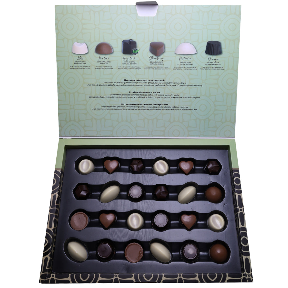 Lotus, praline, hazelnut, strawberry, pistachio and orange in small bites that deliver a unique taste and an exceptional experience of indulgence.
